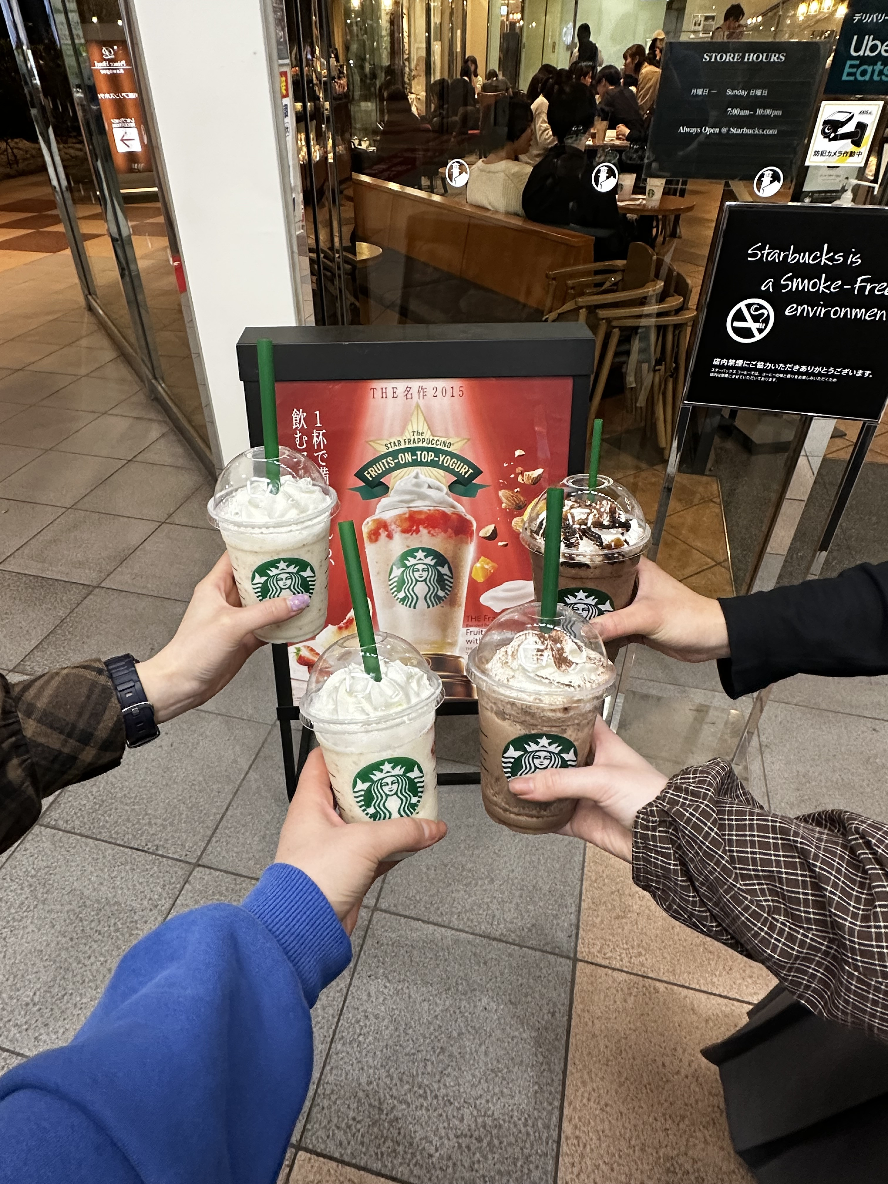 新作のフルーツオントップヨーグルトフラペチーノを飲みたくてアシスタントのみんなでスタバへ散歩しに行きました